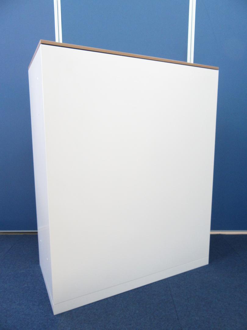 【オフィスの書類をスッキリ整理! 扉の無いタイプなので資料探しがラクラク!】■オカムラ(okamura)製 レクトライン(Rectline)シリーズ オープン書庫 ローキャビネット ■色:ホワイト ※扉外し商品のため外し跡がございます。