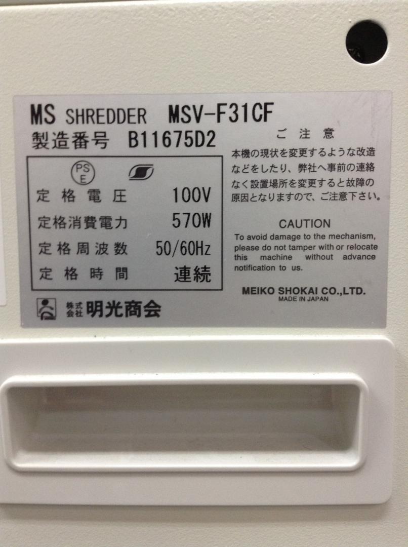 【中古】 MSV-F31CF 明光商会 シュレッダー 195054