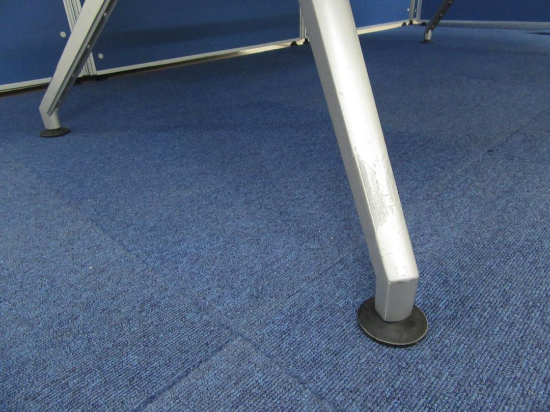 - 一部不具合あり天板歪み、アジャスター無し、キャスター使用不可ようなそのテーブルの本来の効用を果たすための機能以外の一部が使用不可な状態。(例、キャスターロッ ク機能使用不可、棚板無し等がある。)