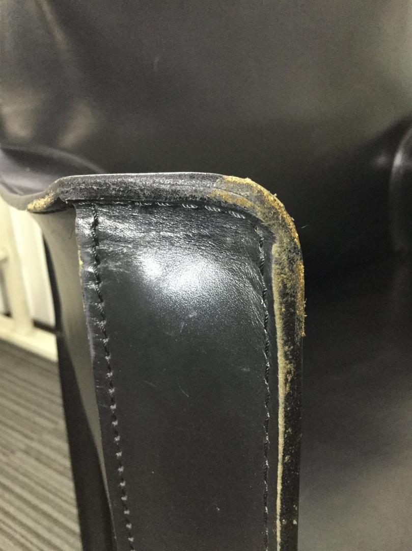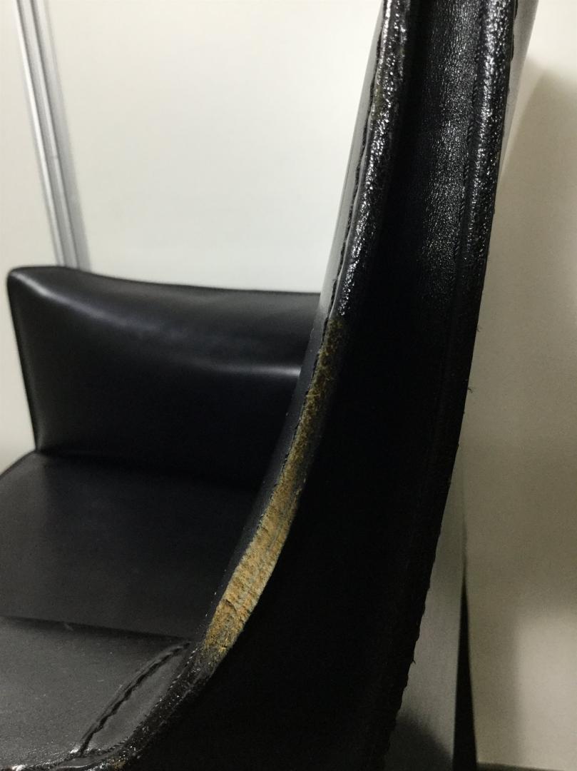 - あり黄ばみ・変色が広い範囲にうっすらある、または濃い黄ばみ・変色が一部ある。(例、座面・背もたれ、脚部等にある。)