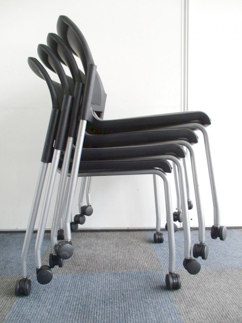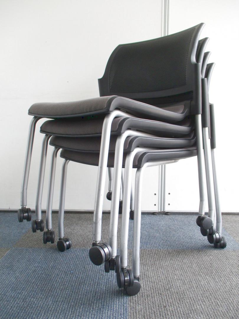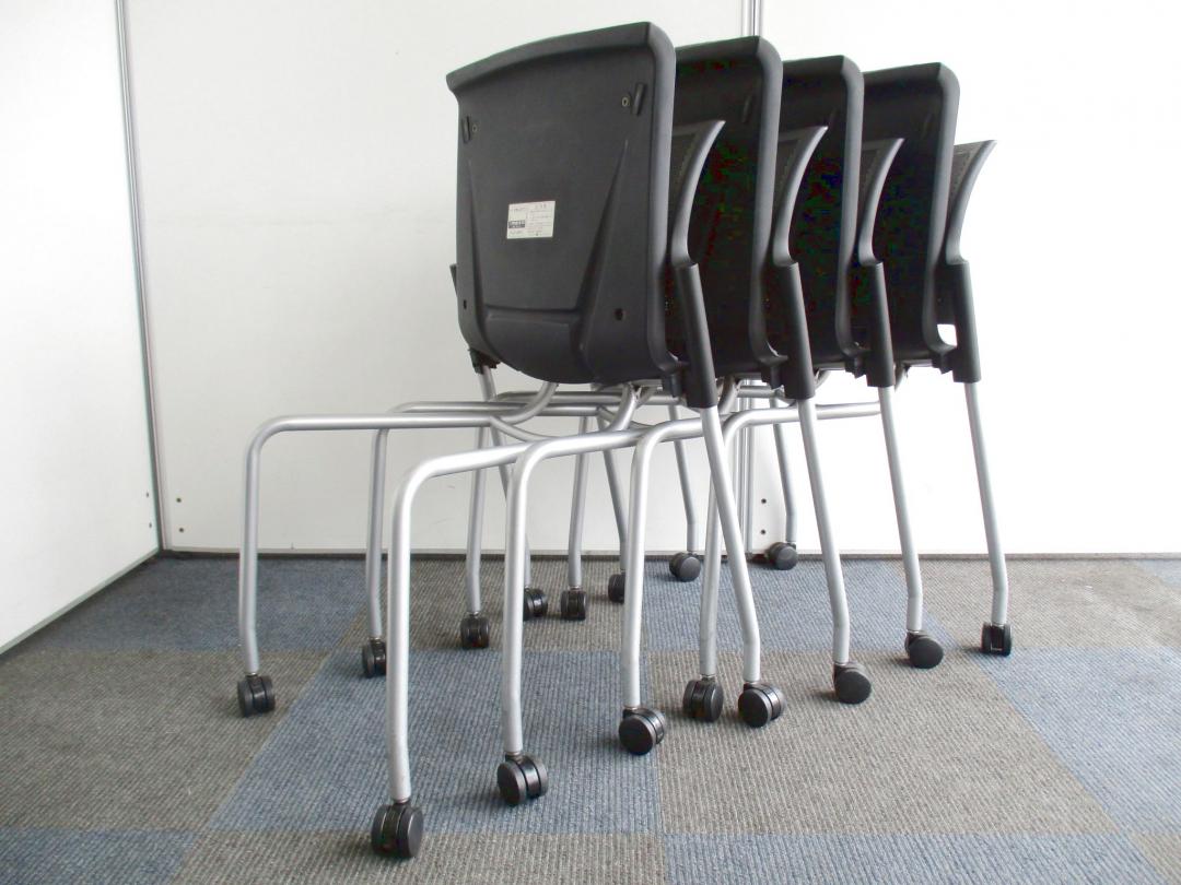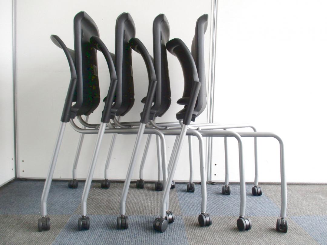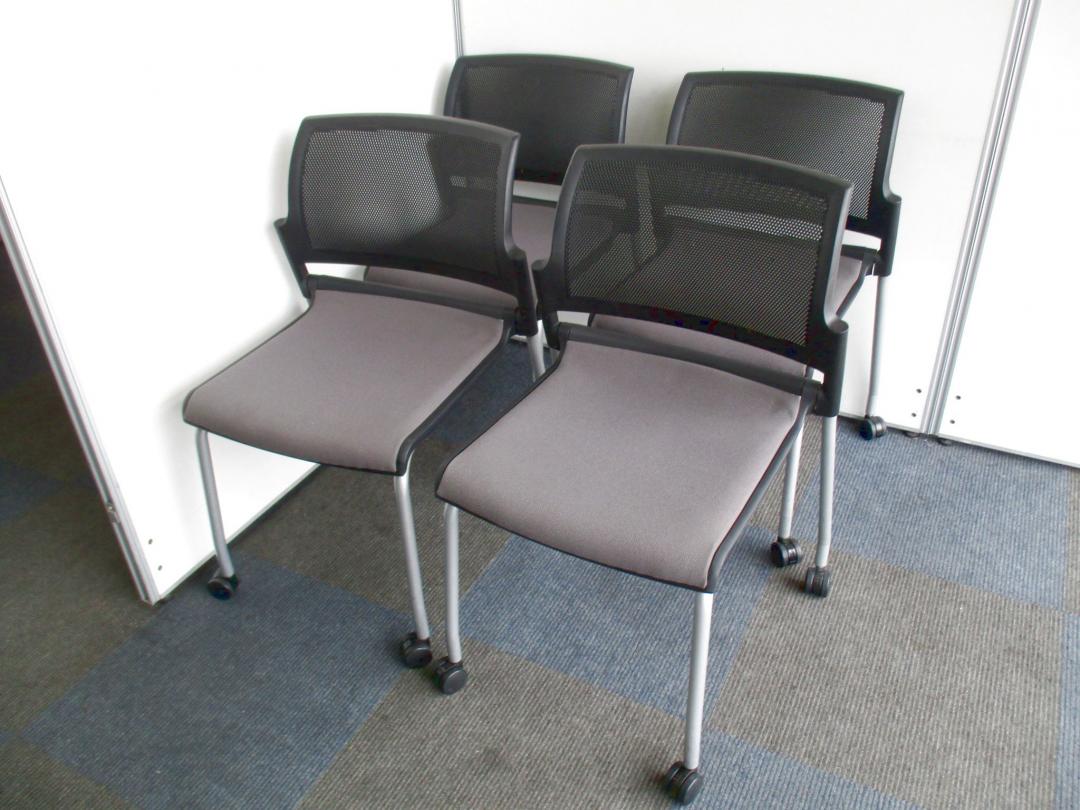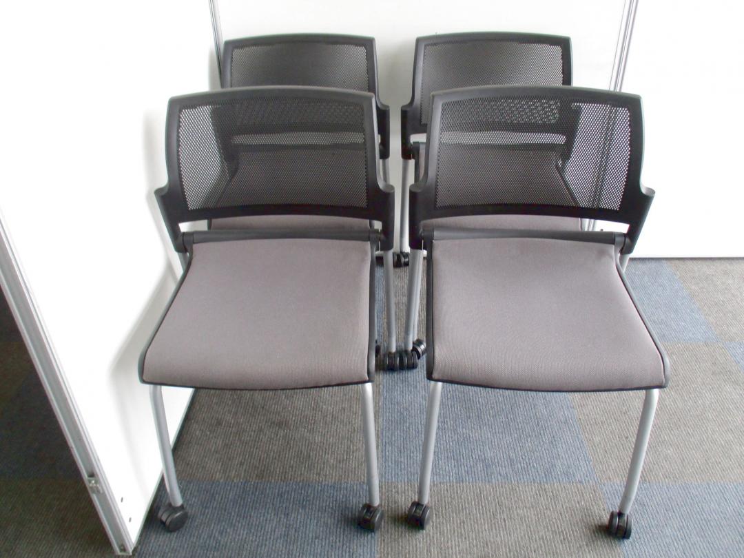 【お得な4脚1セット!】収納方法が選べるミーティングチェア【会議、ミーティングに大活躍!】- 千葉店