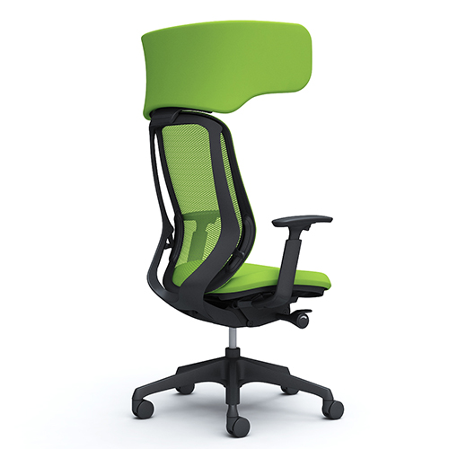 【人気のヘッドレスト付!集中作業にもオススメのワークヴェール付!】■オカムラ シルフィーチェア 可動肘付 ライムグリーン エクストラハイバック ■背のカーブを変えられる!新感覚のオフィスシーティング!【Okamrua Sylphy】★