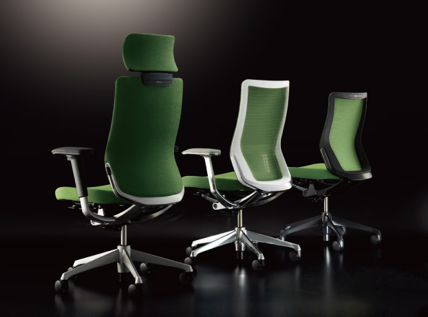 "コーラルは高級オフィスチェアの中でも屈指のバリエーション数を誇っています。背もたれの素材、フレームの色、背もたれの高さ、ヘッドレストの有無、ランバーサポートの有無など、その組み合わせは何千種類に及び、それぞれの快適さを追求することができます。