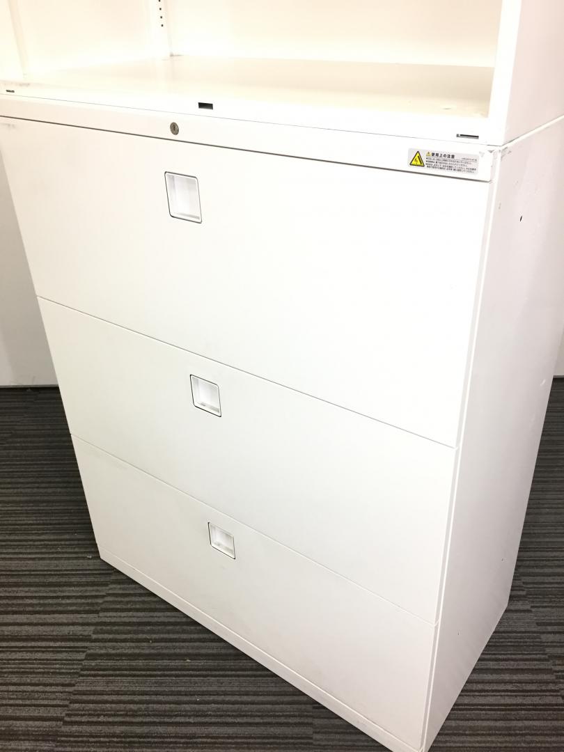 スライド式の扉+引き出しタイプの便利な書庫セットが入荷!使い勝手抜群のハイキャビネットが入荷! ■オカムラ/レクトライン/ホワイト 2枚引き戸+3段ラテラルキャビネット