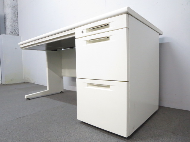 オカムラ製、ホワイトカラーの片袖机が入荷しました。