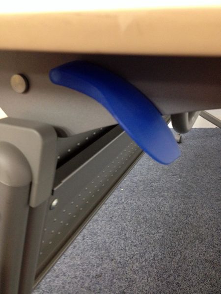 - 一部不具合あり天板歪み、アジャスター無し、キャスター使用不可ようなそのテーブルの本来の効用を果たすための機能以外の一部が使用不可な状態。(例、キャスターロッ ク機能使用不可、棚板無し等がある。)