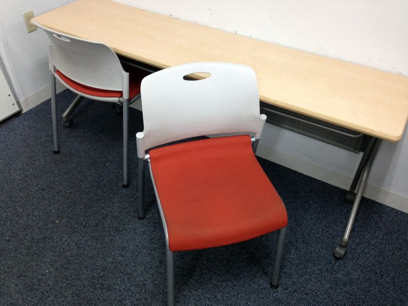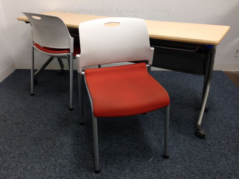 【2セット揃います!】【セット約10%オフ!】ナチュラル天板とオレンジチェアのデザイン性ばつぐんの会議室セット!- 名古屋千種店