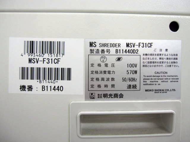 【中古】 MSV-F31CF 明光商会 シュレッダー 196081