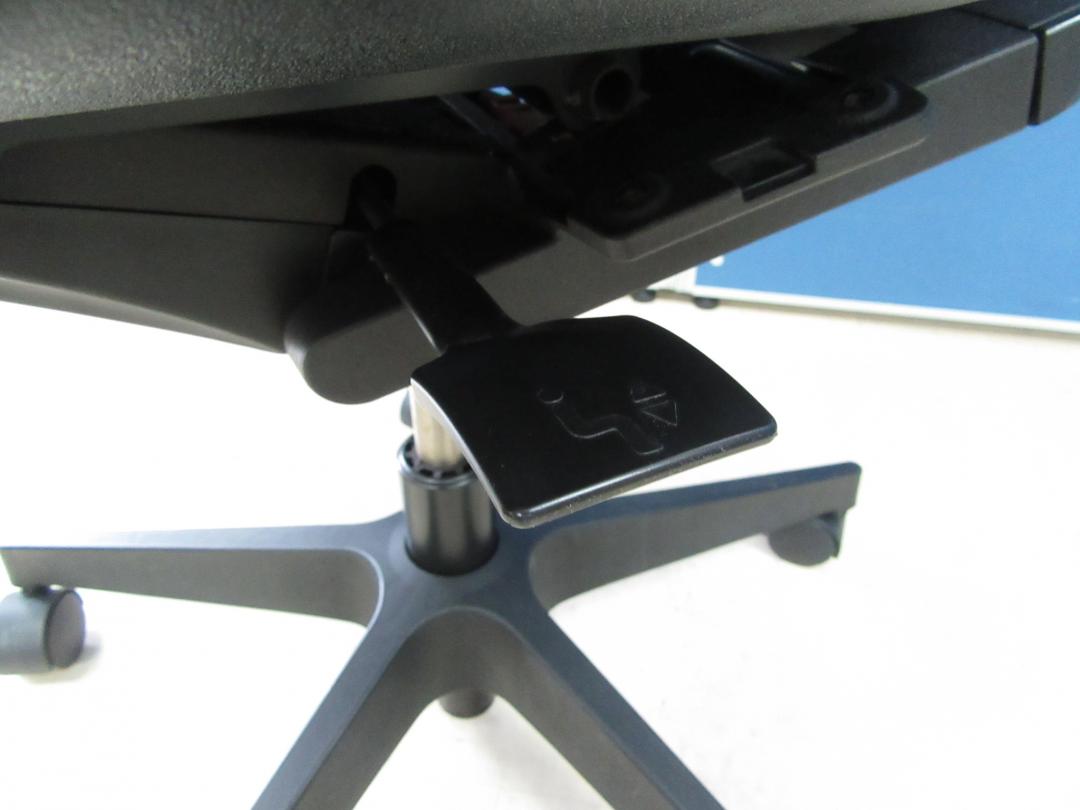 また座面下のレバー操作により、座面を40mmのストローク(10mmピッチ)で好みの位置に調節でき、