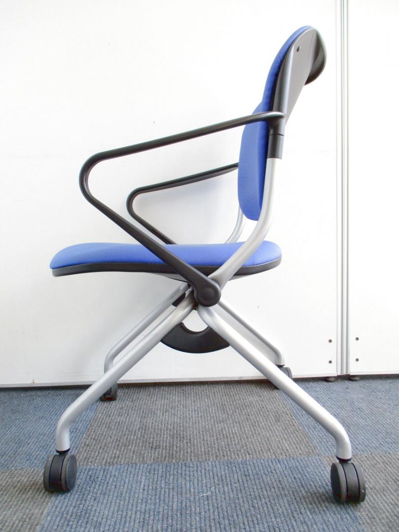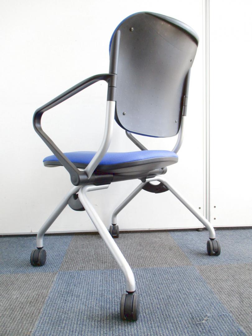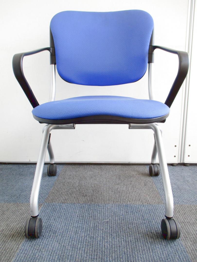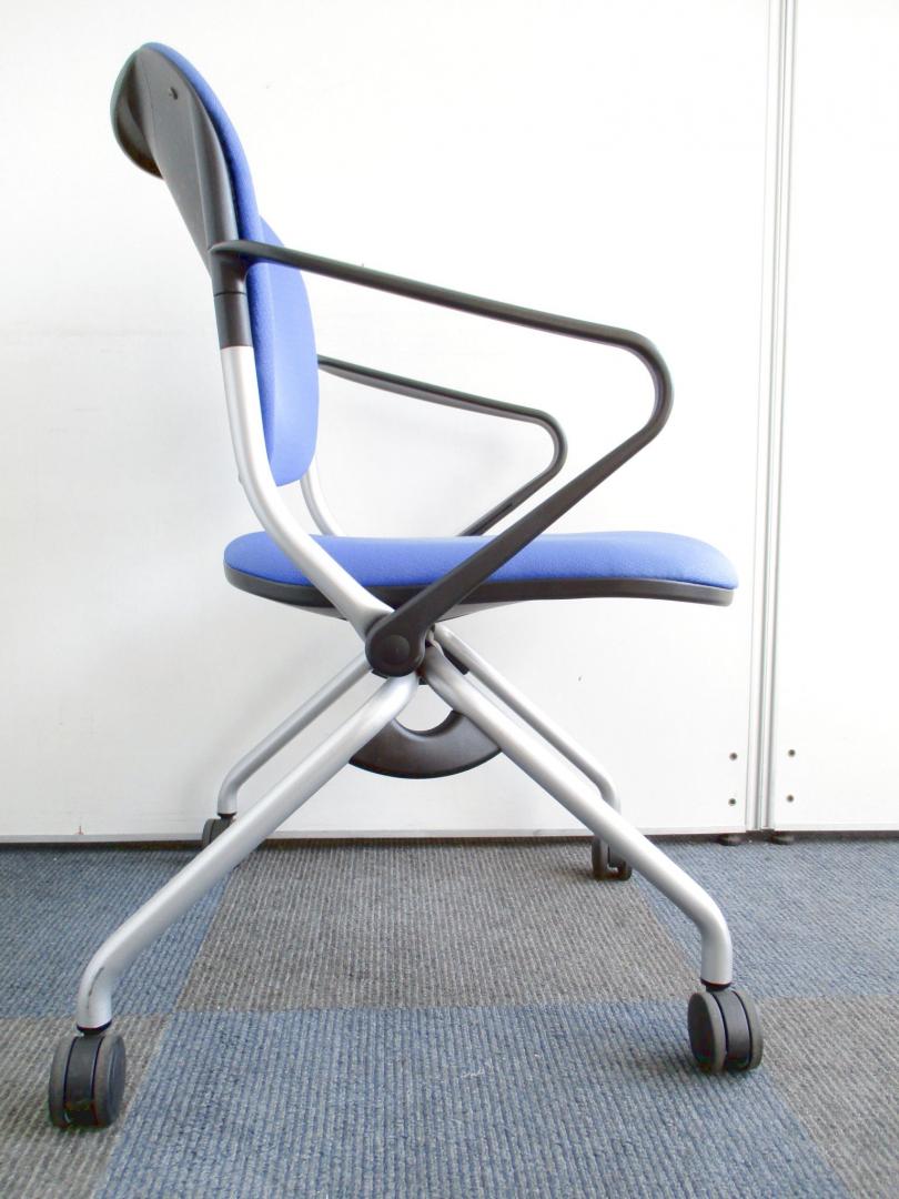 【ブルー色のミーティングチェア!】会議室にぴったりの商品!【折り畳んで収納可能!】- 千葉店