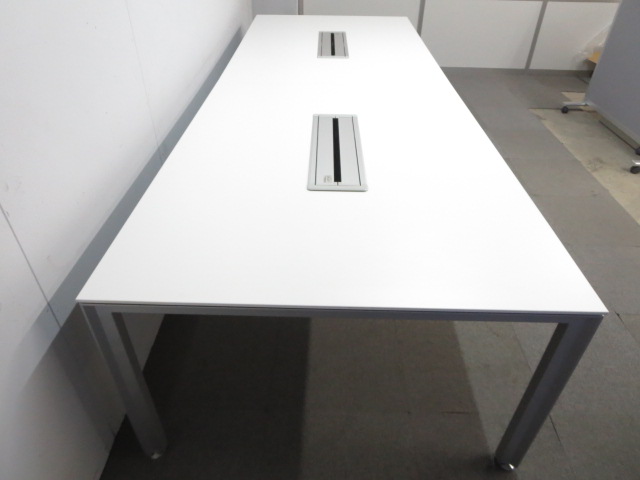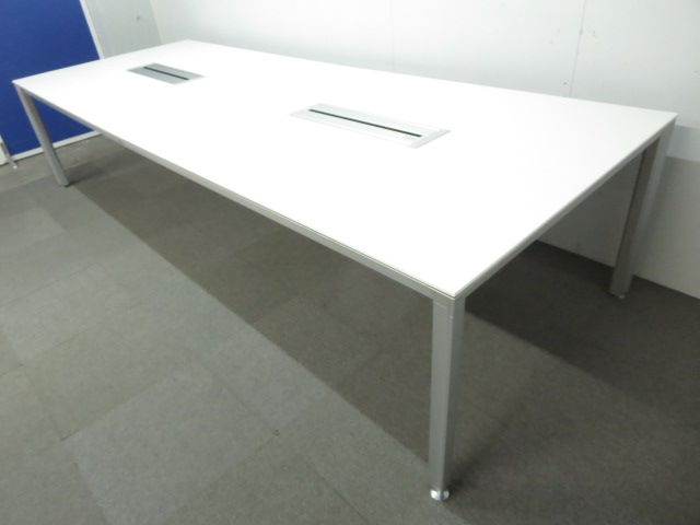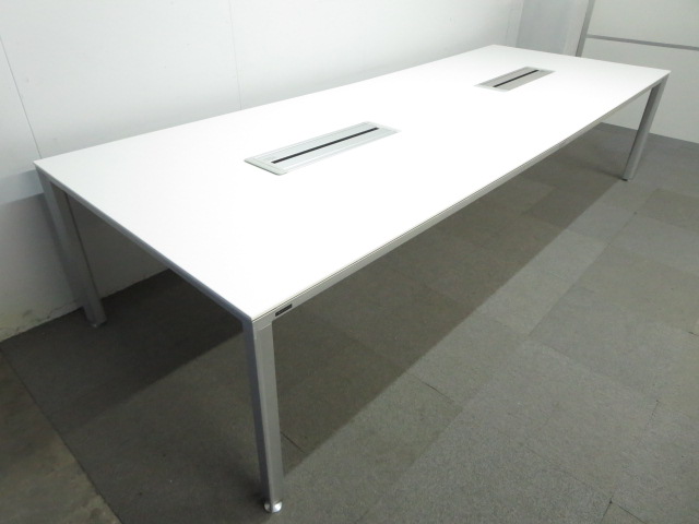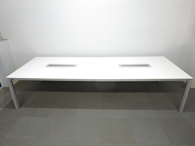 【オフィシャルな空間にもフィット!】■オカムラ製 大型会議テーブル ■配線ボックス2個付 ホワイト ■W3200mmサイズ(8~10人用) ■4L12シリーズ【okamura】- 川崎店
