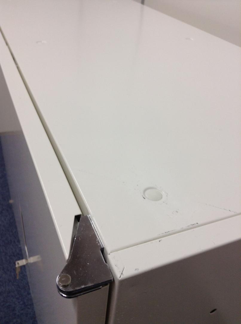 - 多数不具合あり引出の開閉不可、施錠不可、棚板無しといったその書庫の本来の効用を果たすための機能以外の多数が使用不可(例、扉、引出の開閉がしづらいなどがある。 )