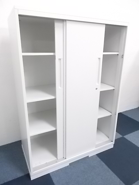 【人気のホワイト】内田洋行製の3枚引違書庫 3枚式で出し入れも楽々【省スペースの強い味方】- 在庫数