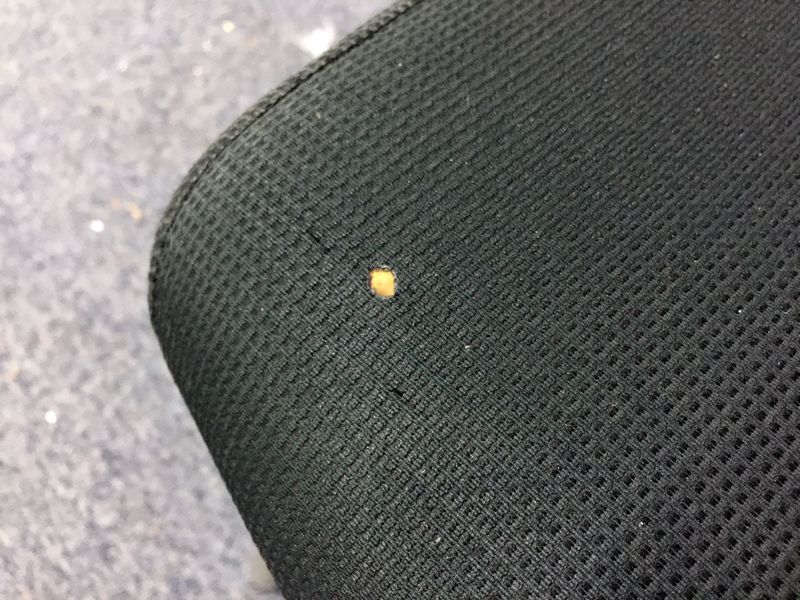 - あり黄ばみ・変色が広い範囲にうっすらある、または濃い黄ばみ・変色が一部ある。(例、座面・背もたれ、脚部等にある。)