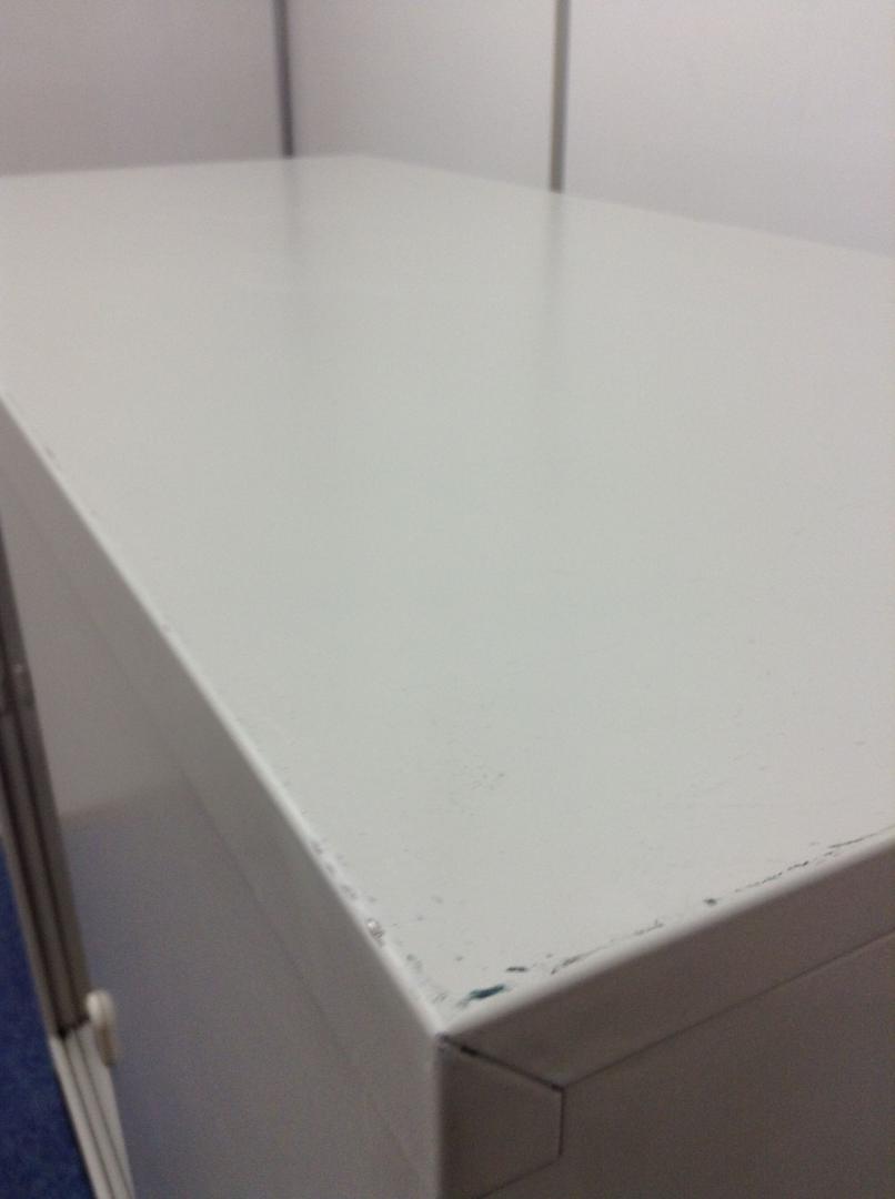 - 多数不具合あり引出の開閉不可、施錠不可、棚板無しといったその書庫の本来の効用を果たすための機能以外の多数が使用不可(例、扉、引出の開閉がしづらいなどがある。 )