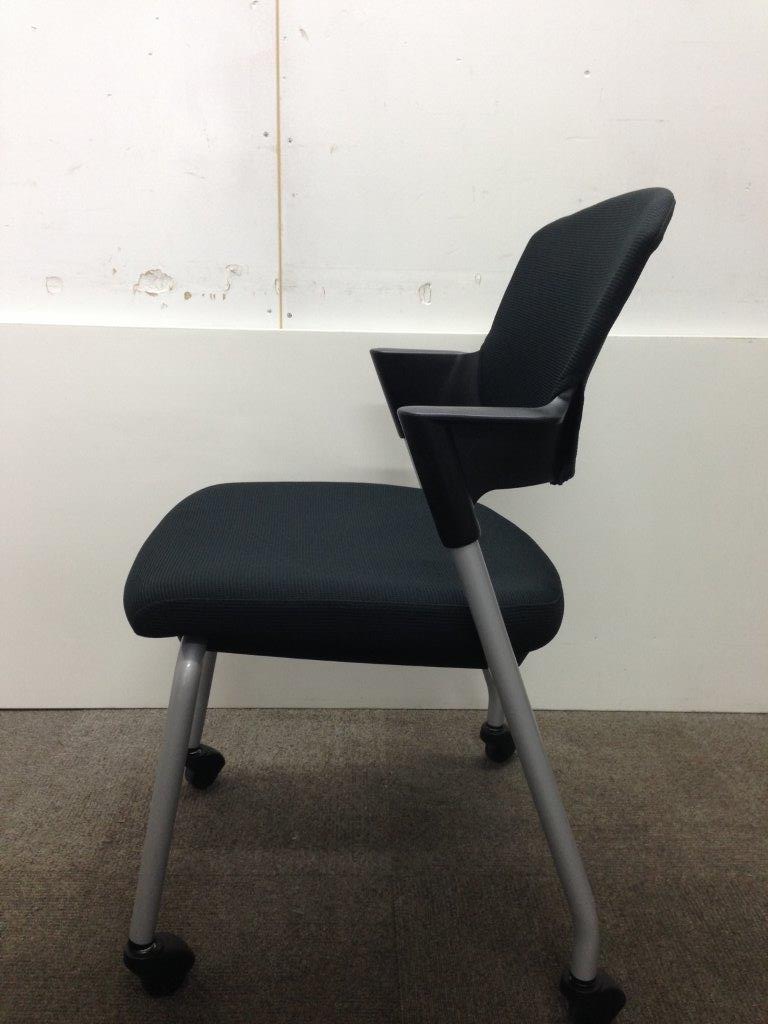 【座面のクッション性 ◎】コクヨ製のスタッキングチェア プロッティ 小さな肘置き付 ※ゴムキャスター仕様- 豊中・尼崎店