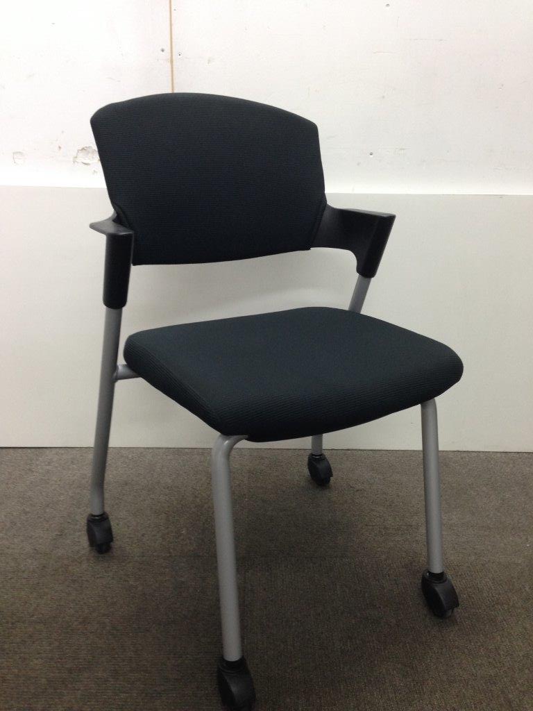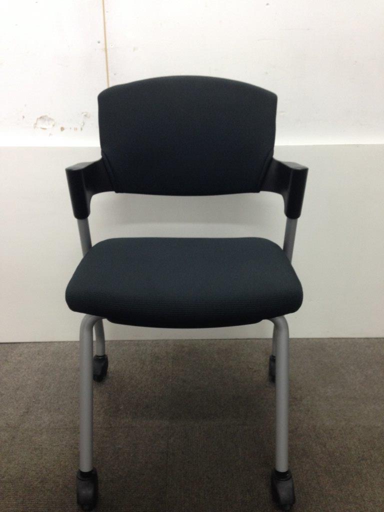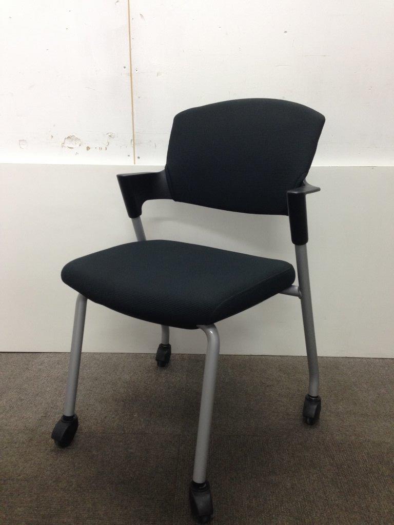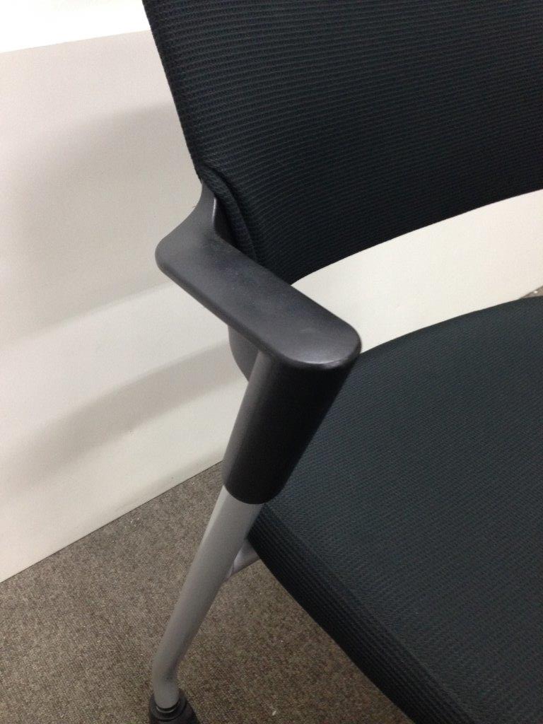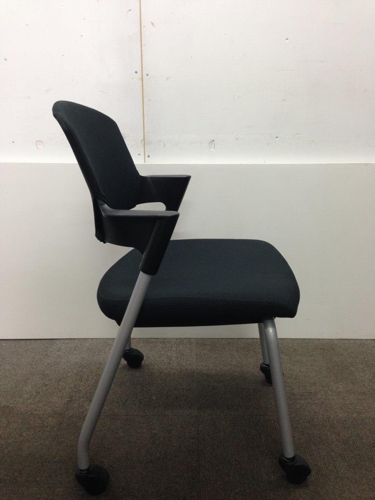 【シンプルスマートなスタッキングチェア!分厚いクッションで長時間でも快適な座り心地!】■スタッキングチェア 肘付ミーティングチェア ■固定肘 ■キャスター付 ■ブラック ■背面樹脂/コクヨ(KOKUYO/プロッティ