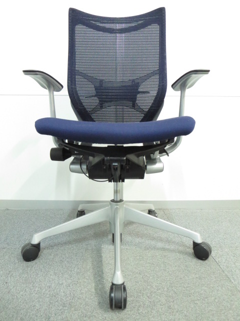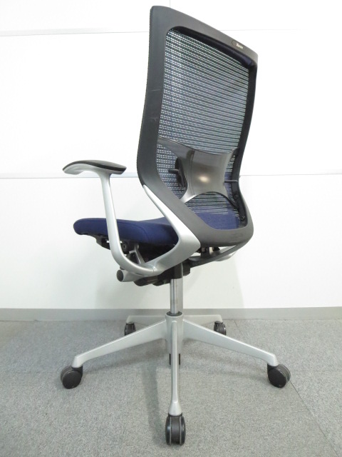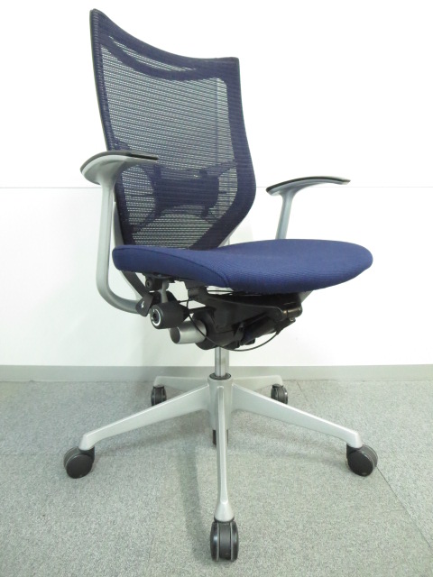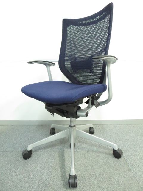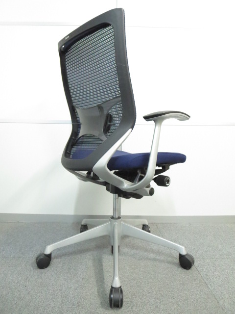 【先進のメッシュチェア!】■オカムラ バロンチェア ■ブルー デザインアーム付 ■腰を支えるランバーサポート付【Baron】- 川崎店