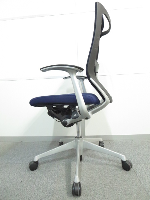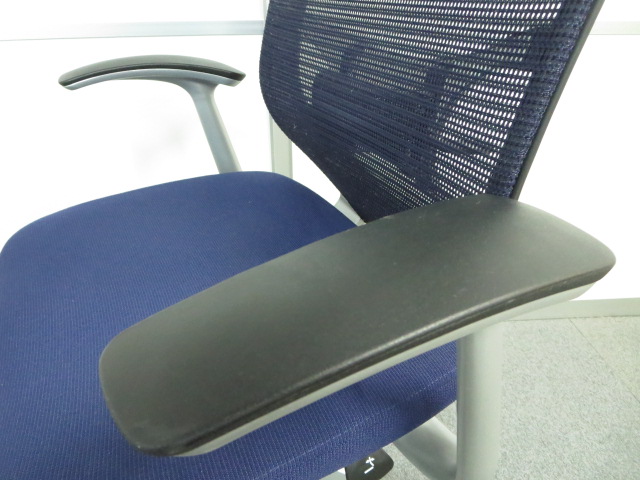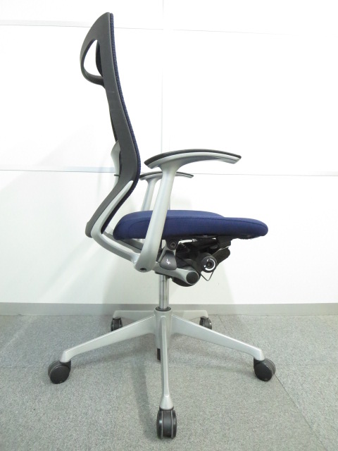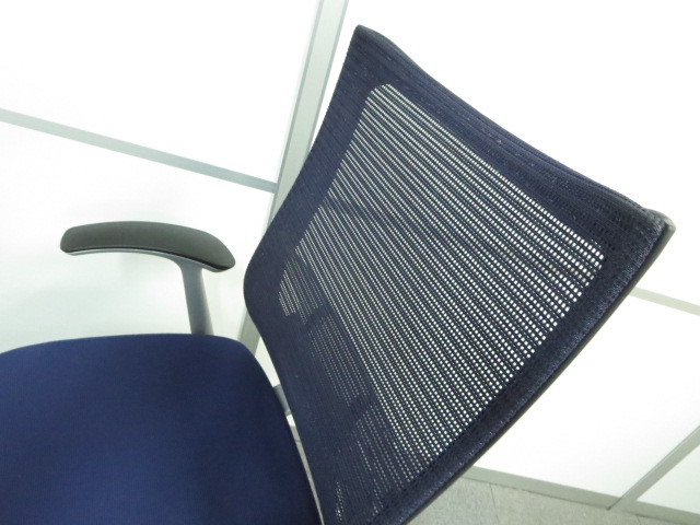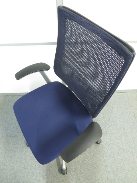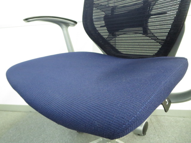 【オフィスの執務室、会議室におすすめ!】■オカムラ(okamura)製 バロン(Baron)チェア 肘付き ハイバック 背面メッシュ ■可動肘 ■ダークブルー × ホワイトシェル【硬めの座面が大人気!国産メッシュチェアの代表格!】【状態良好品!】
