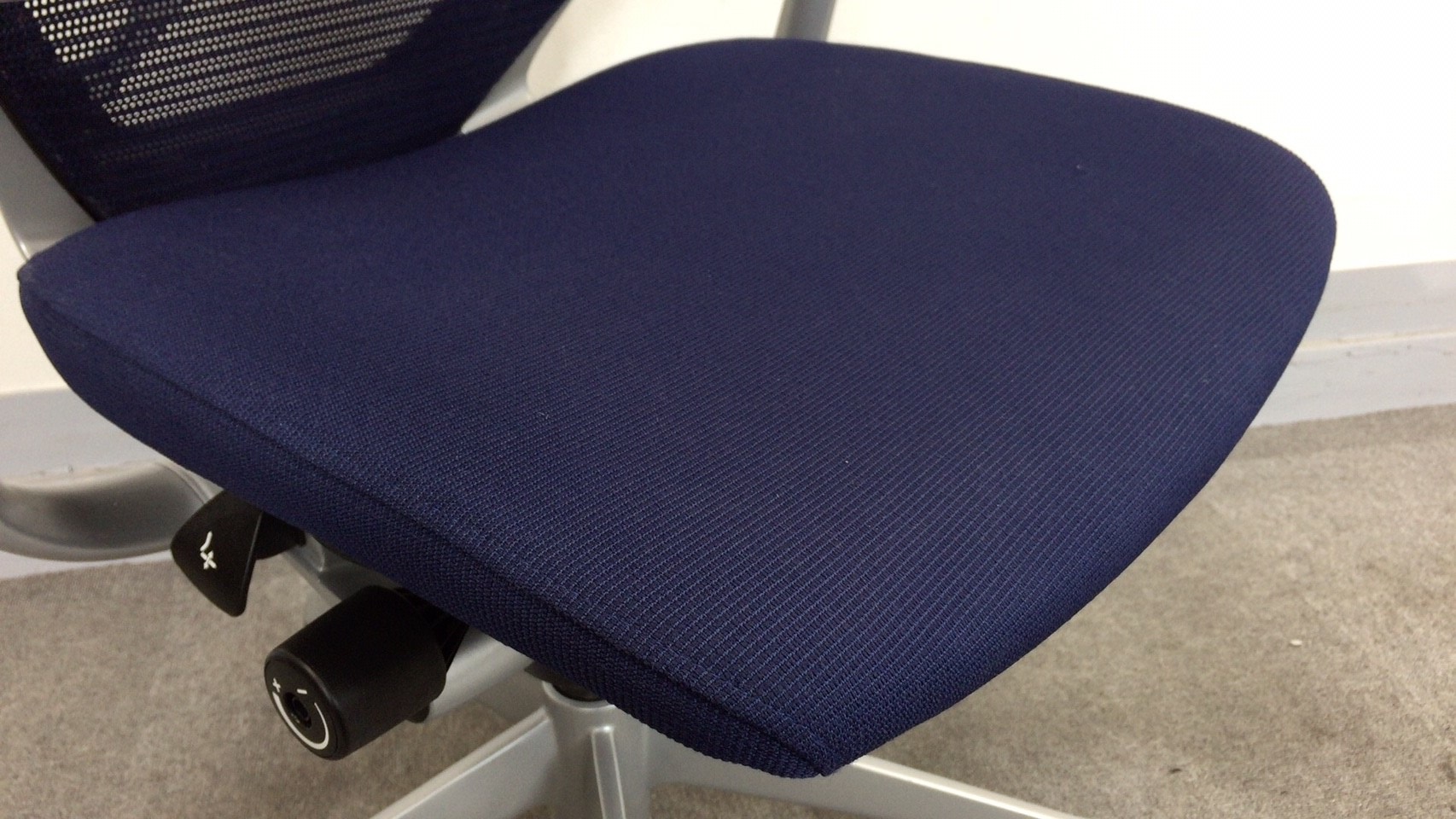 もちろん座り心地もコンテッサの直系ですから快適です。座面の素材はクッションとメッシュの2タイプあります。私、個人的には座面の中心部分でも外側でもテンションが変わらないクッション素材が、足を閉じても開いても快適なので推しです!"