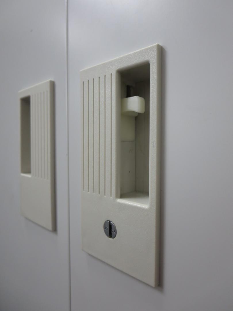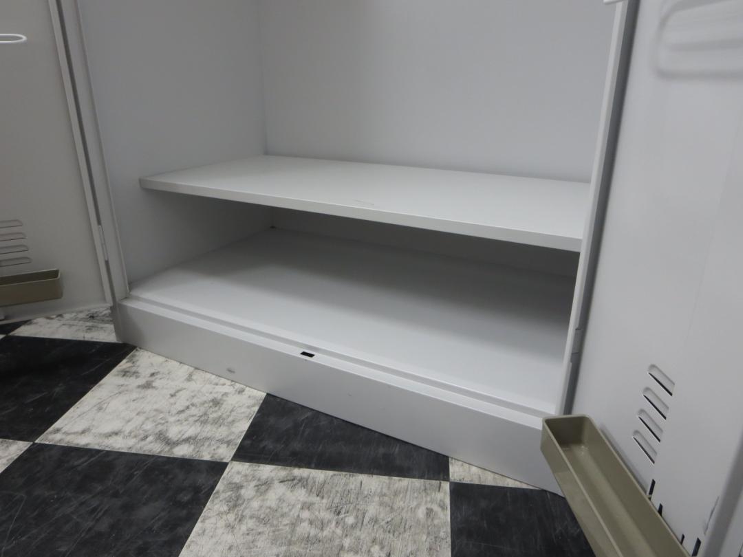 - 一部不具合ありそ引出の開閉不可、施錠不可、棚板無しといったの書庫の本来の効用を果たすための機能以外の一部が使用不可(例、扉、引出の開閉がしづらいなどがある。 )