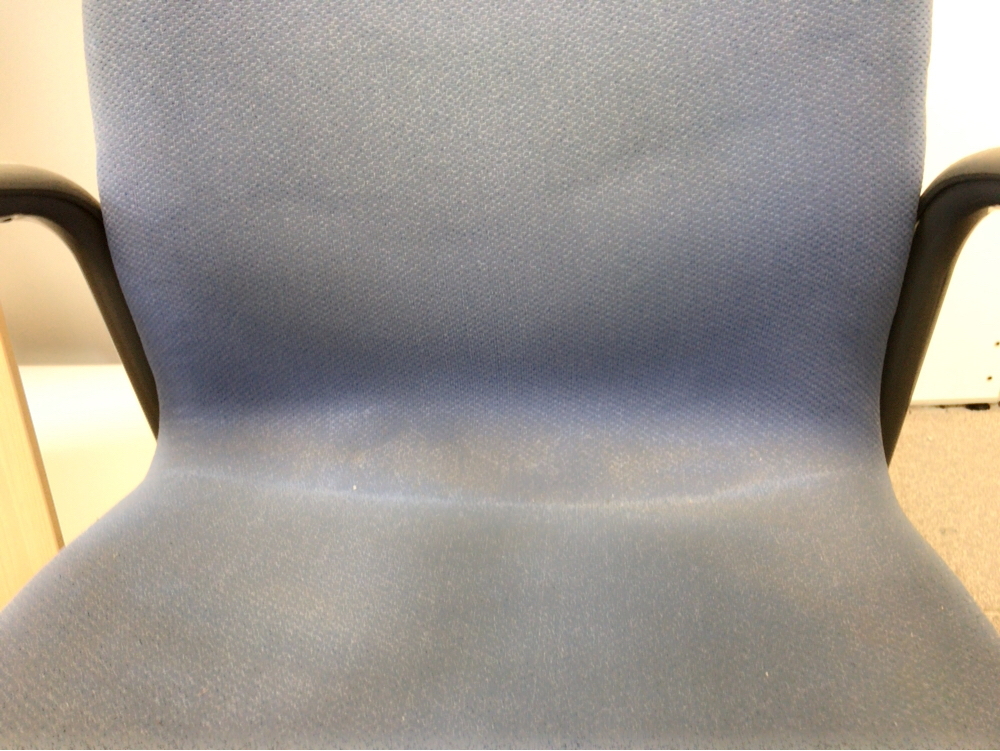 - あり黄ばみ・変色が広い範囲にうっすらある、または濃い黄ばみ・変色が一部ある。(例、座面・背もたれ、脚部等にある。)