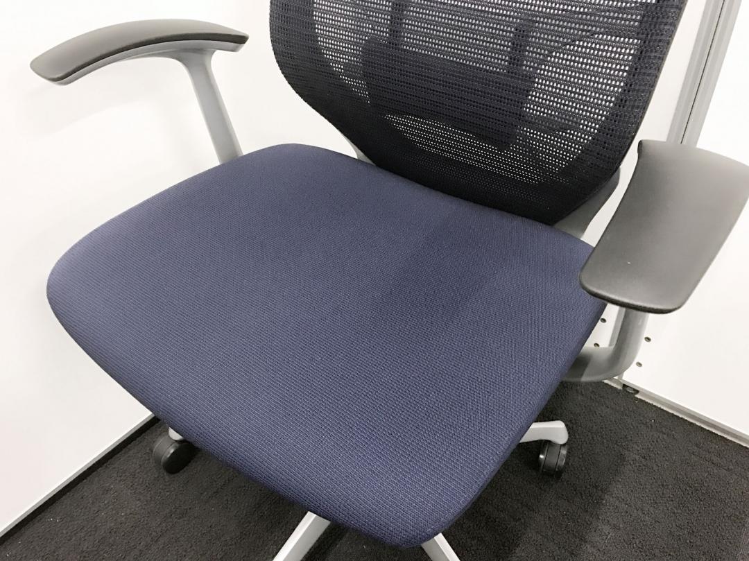 【新品ヘッドレスト付き】オカムラ/バロン/ブルー×ホワイト/可動肘/座面クッション【AD】