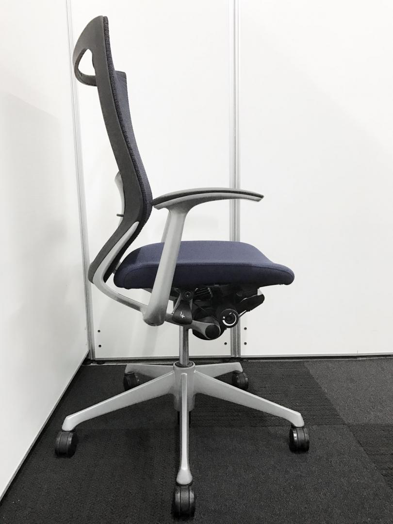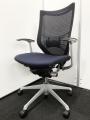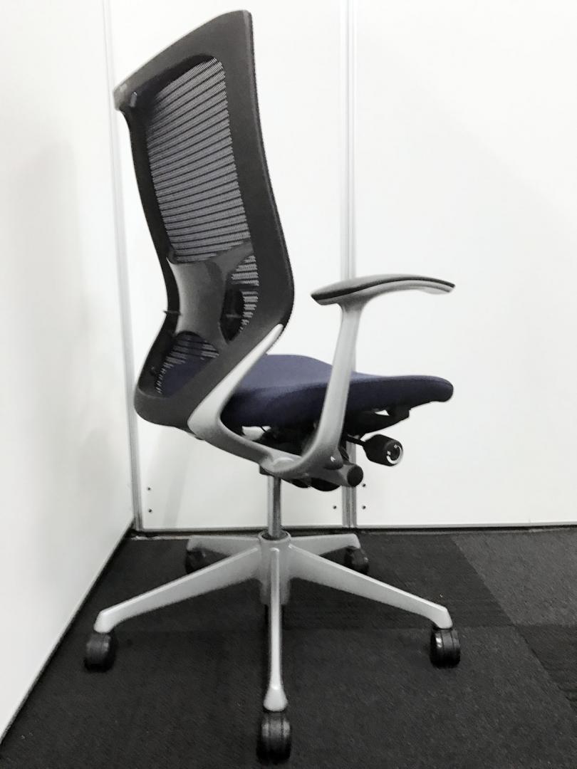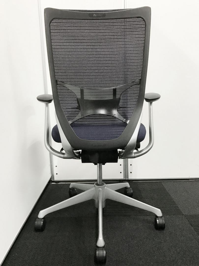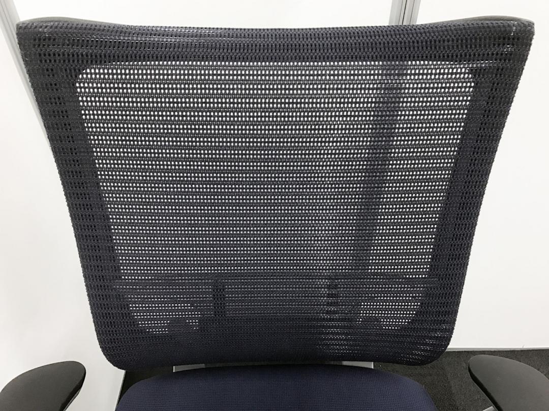 【オフィスの執務室、会議室におすすめ!】■オカムラ(okamura)製 バロン(Baron)チェア 肘付き ハイバック 背面メッシュ ■可動肘 ■ダークブルー × ホワイトシェル【硬めの座面が大人気!国産メッシュチェアの代表格!】【状態良好品!】