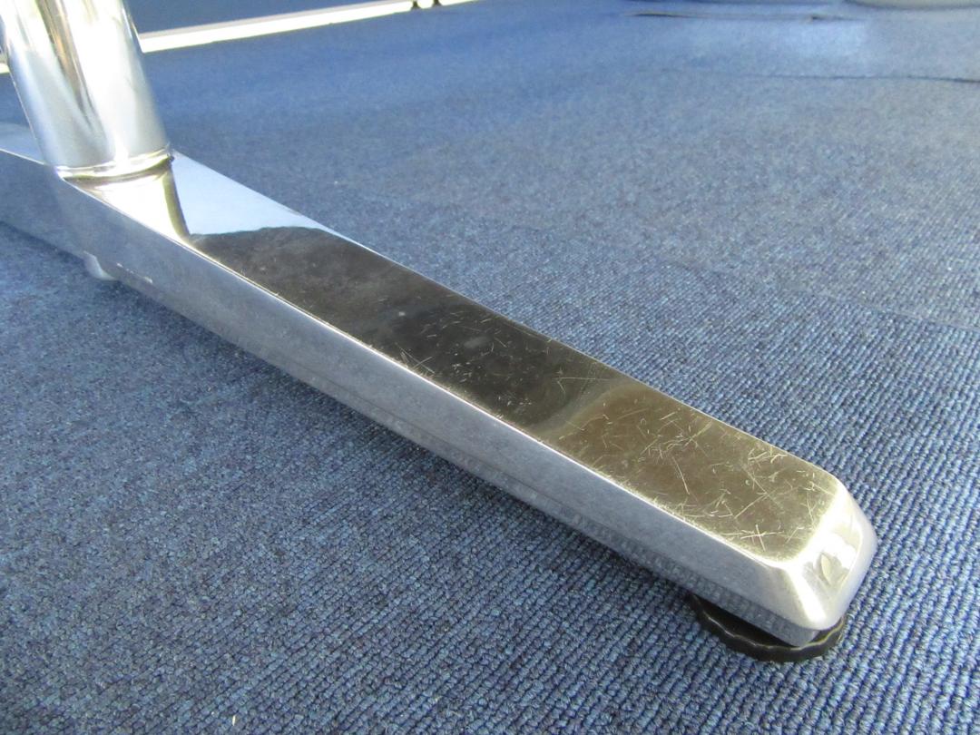 - 一部不具合あり天板歪み、アジャスター無し、キャスター使用不可ようなそのテーブルの本来の効用を果たすための機能以外の一部が使用不可な状態。(例、キャスターロッ ク機能使用不可、棚板無し等がある。)