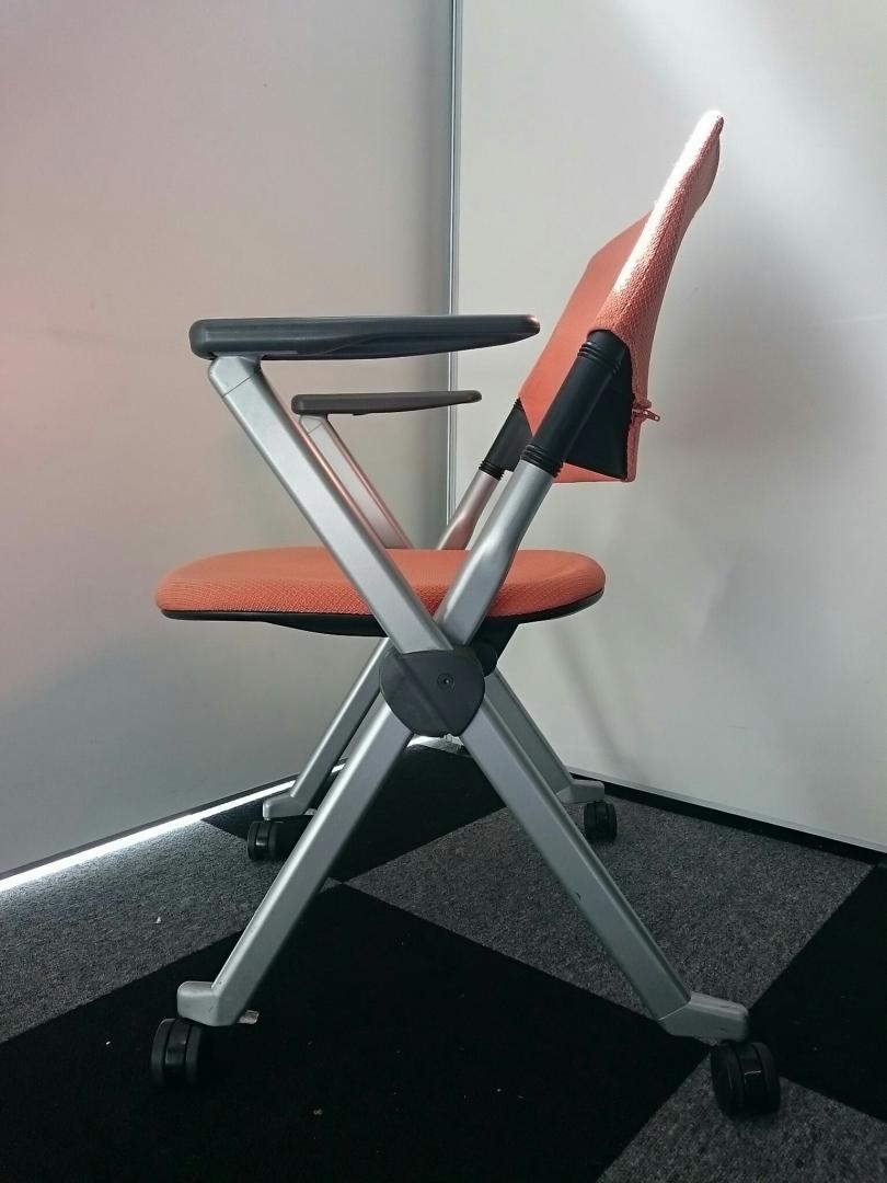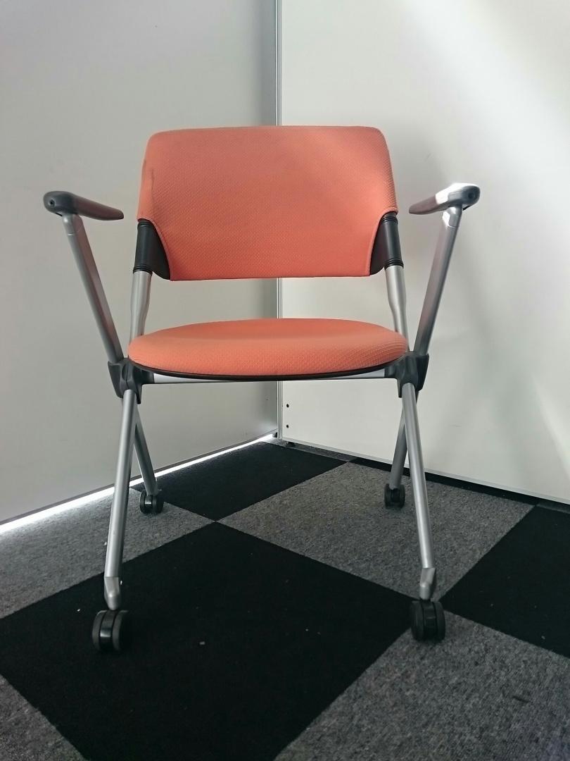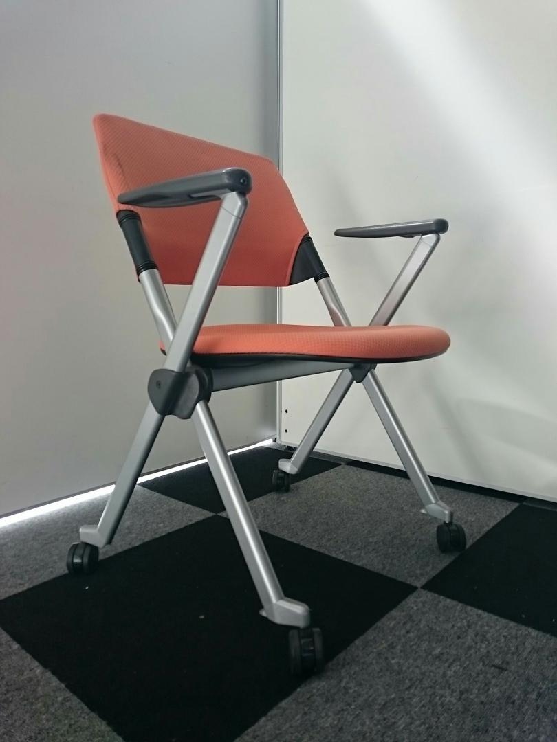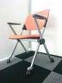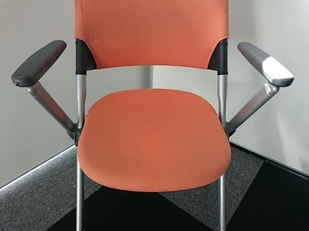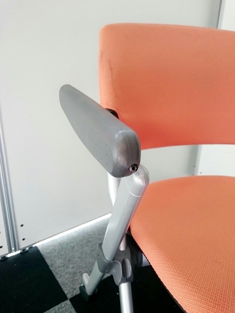 【鮮やかなオレンジで肘付のチェア】オカムラ製LITA【収納スペースを厭わないスタッキングチェア】- 在庫数
