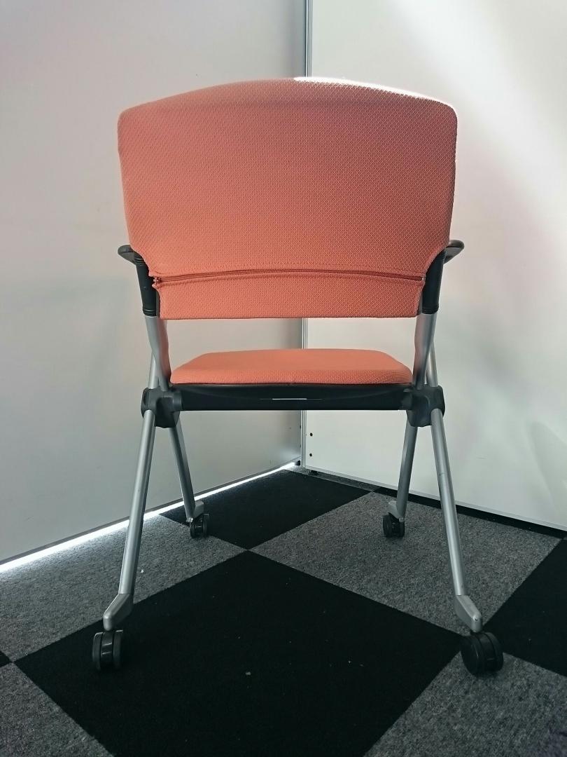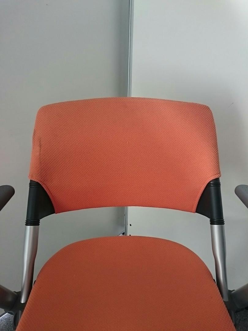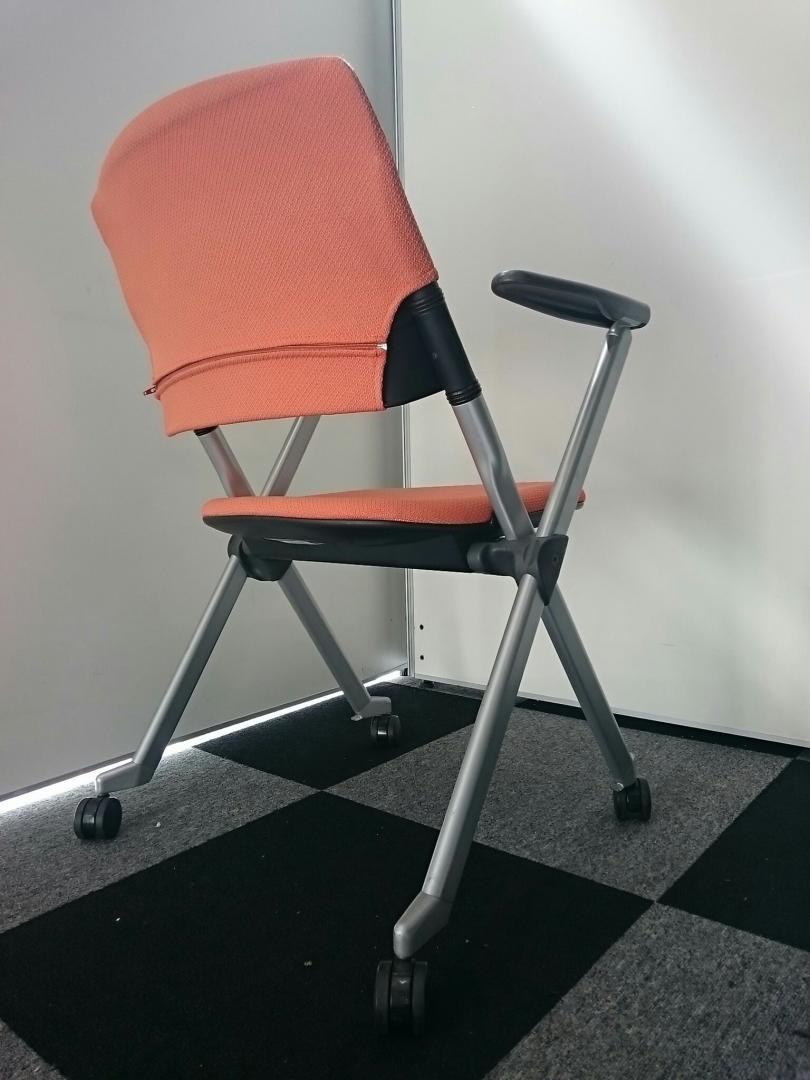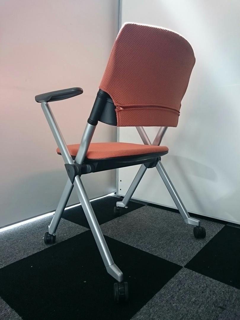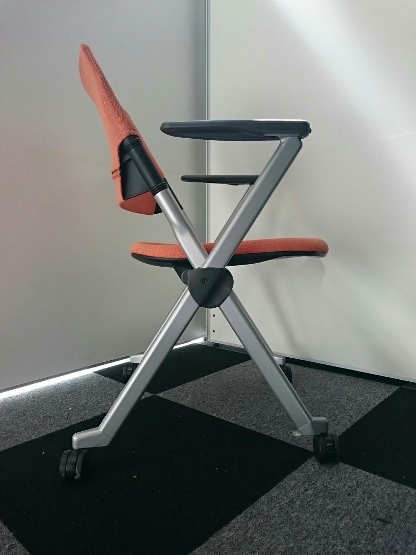 【鮮やかなオレンジで肘付のチェア】オカムラ製LITA【収納スペースを厭わないスタッキングチェア】- 在庫数