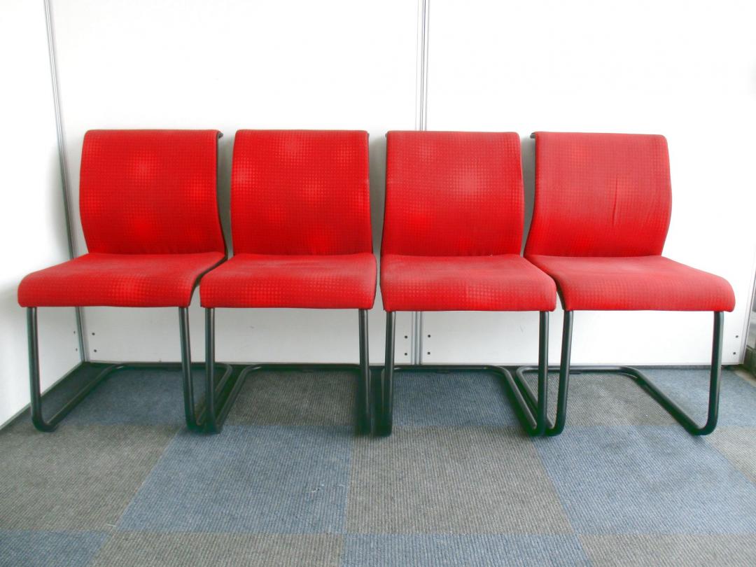 【お得な4脚1セット!】レッド色のミーティングチェア!【お洒落なチェア!】- 千葉店