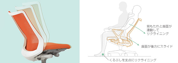 - 座った瞬間の衝撃を吸収するブリッジベンディングシート採用。長時間の着座でも臀部が座面にすっぽり収まり、心地よさが持続。