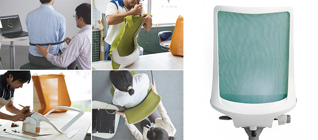 包み込む - 新技術のラウンドフィットバック採用。深めのカーブが小柄な方の腰にフィット。大柄な方もメッシュがしなり、優しく包み込みます。