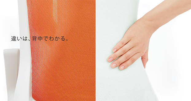 包み込む - 新技術のラウンドフィットバック採用。深めのカーブが小柄な方の腰にフィット。大柄な方もメッシュがしなり、優しく包み込みます。