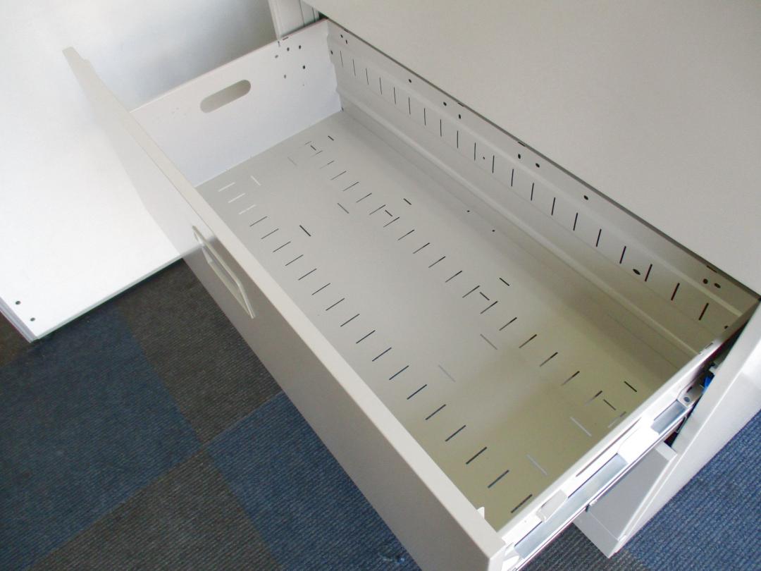 - 一部不具合ありそ引出の開閉不可、施錠不可、棚板無しといったの書庫の本来の効用を果たすための機能以外の一部が使用不可(例、扉、引出の開閉がしづらいなどがある。 )