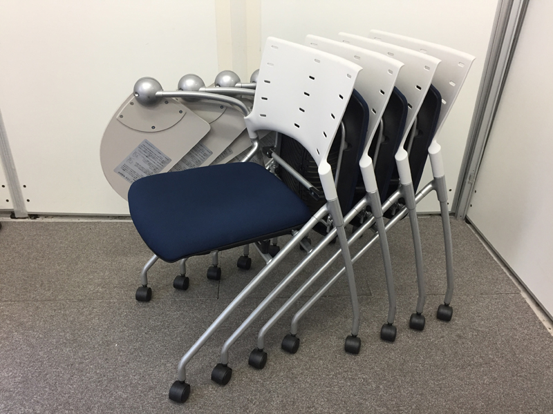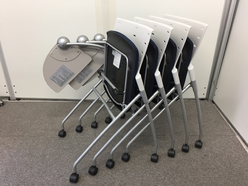 【4脚揃います】【セット商品】【国産】メモ台付きでセミナーなどに大活躍!- 在庫数