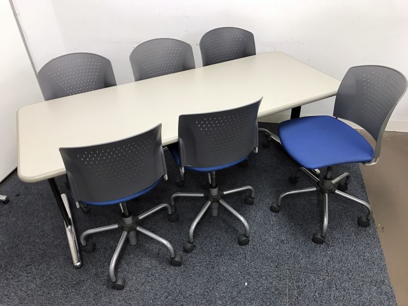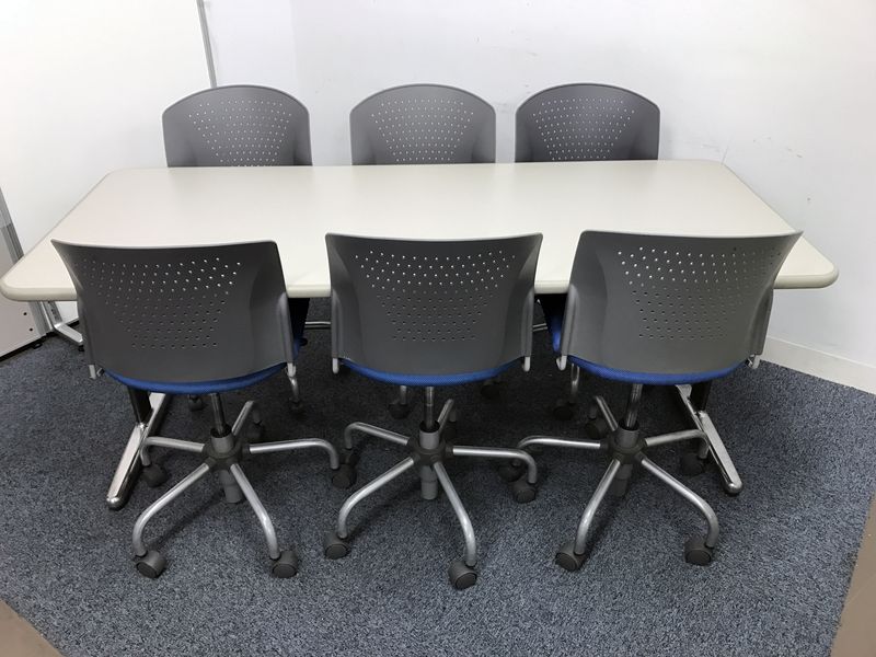 【1セット限定!!】お得な6名ミーティングセット!! チェアは高さ調整可能!!- 名古屋千種店