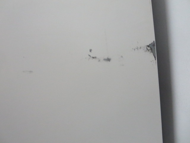 - かなり強い黄ばみ・変色が商品全体にある。(例、天板、正面、背部、サイド部分にある。)