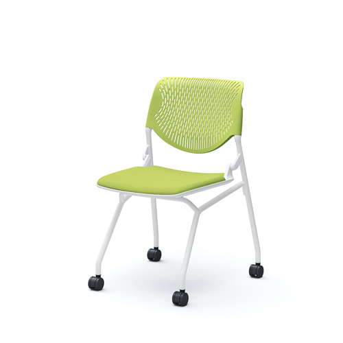 ■フレームまでグリーン■Simple Designを追求【必要最小限で最大限の座り心地のミーティングチェア】- 全店共通商品