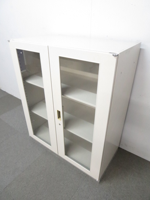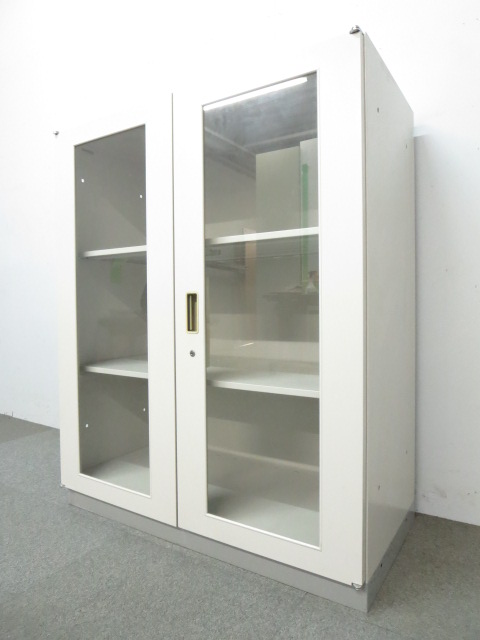 イトーキ、シンラインシリーズのガラス両開き書庫です。