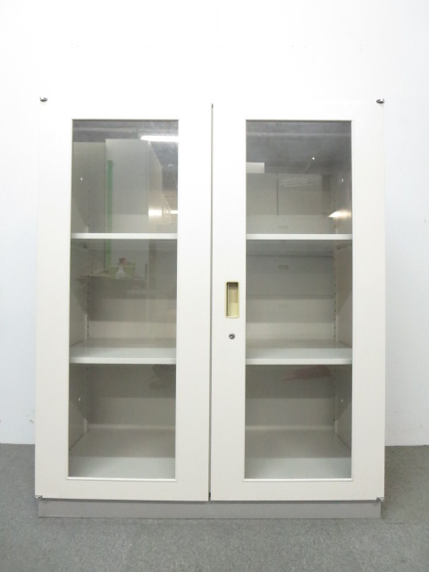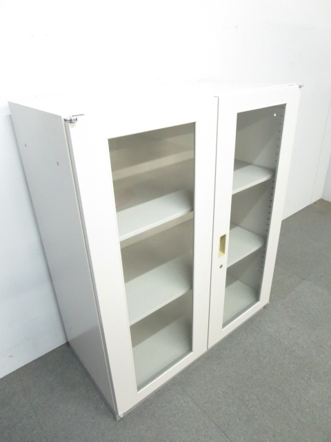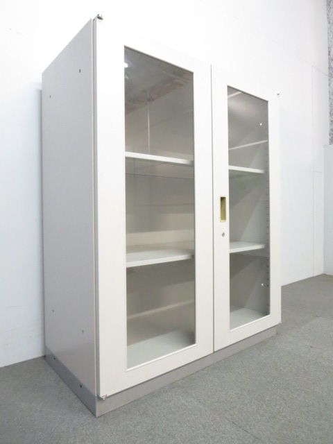 ガラス両開き書庫は中古での入荷が少なく人気の高い商品です!