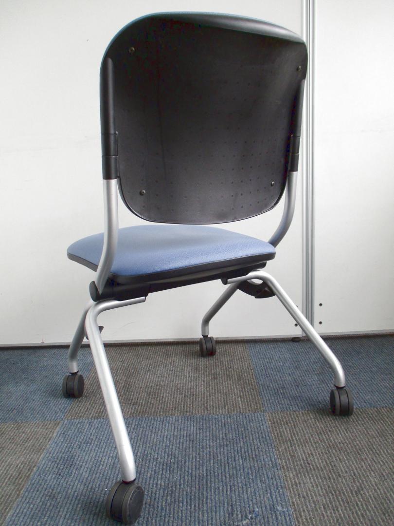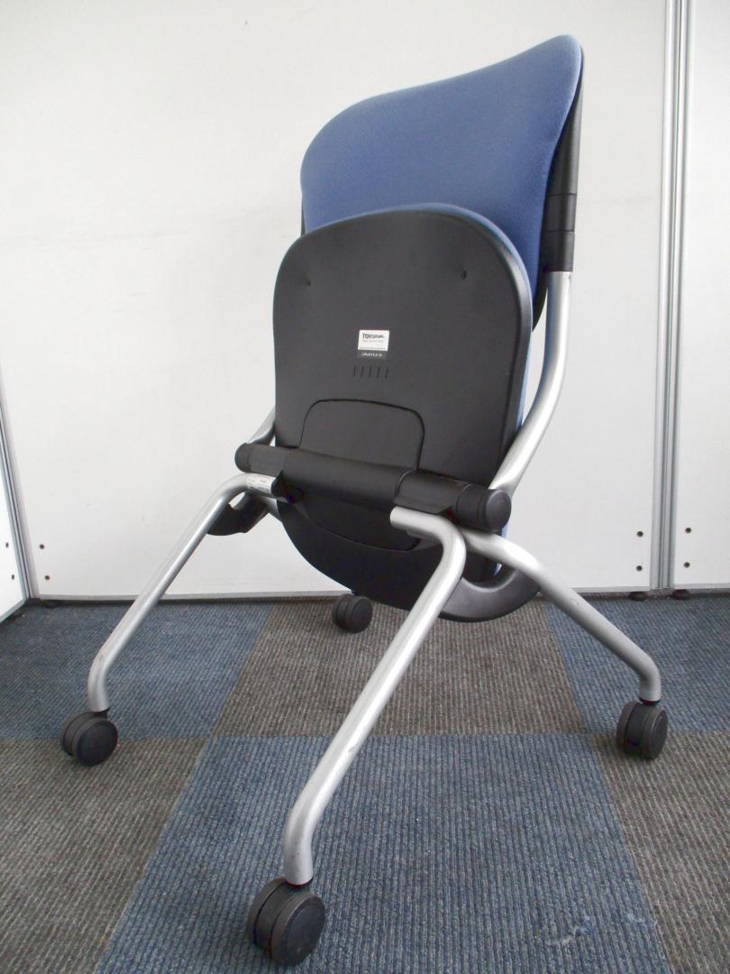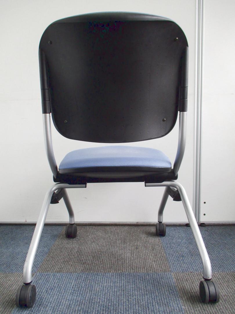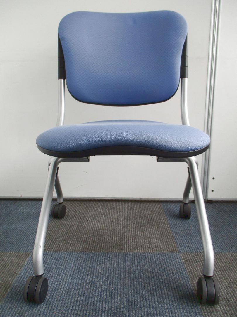 【ブルー色のミーティングチェア!】折りたたんで収納可能!【会議室におすすめ!】- 千葉店