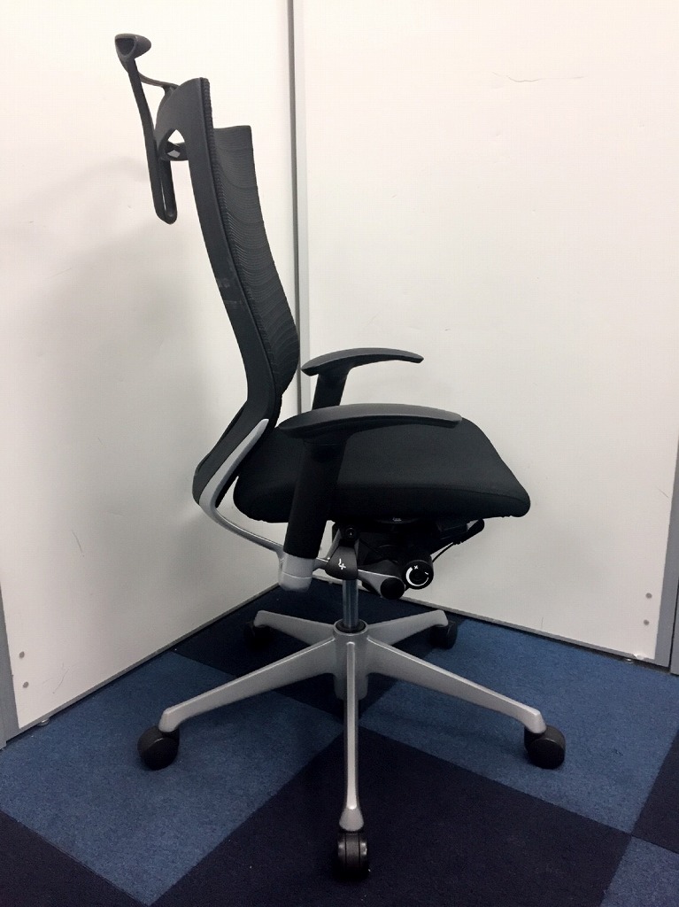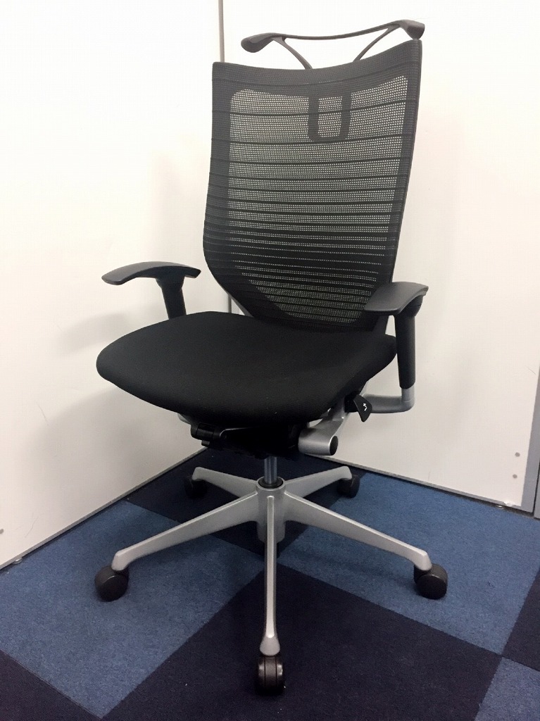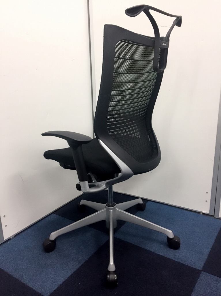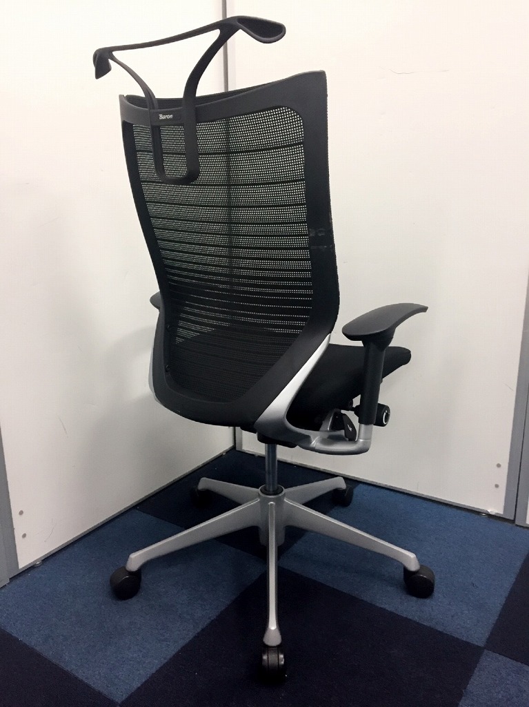 【長時間の着座でも疲れにくい!ベストなポジションが得られる先進設計!】■オカムラ バロンチェア 肘付 ブラック ハイバック シルバーフレーム ■良い椅子は腰を守る投資です!【Okamura Baron】