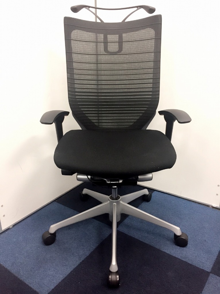 【座面クッション】スタンダードメッシュ ブラックフレーム アームレスト付き ヘッド付きオススメ(おすすめ) 大人気 ・Okamura/オカムラ ・Baron/バロン ※横浜本店撮影画像※