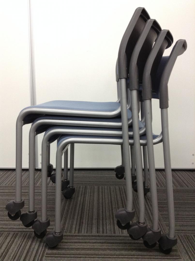 【4脚セット】サンケイ製 ゴムキャスター付き スタッキングチェア!!- 京都東寺店