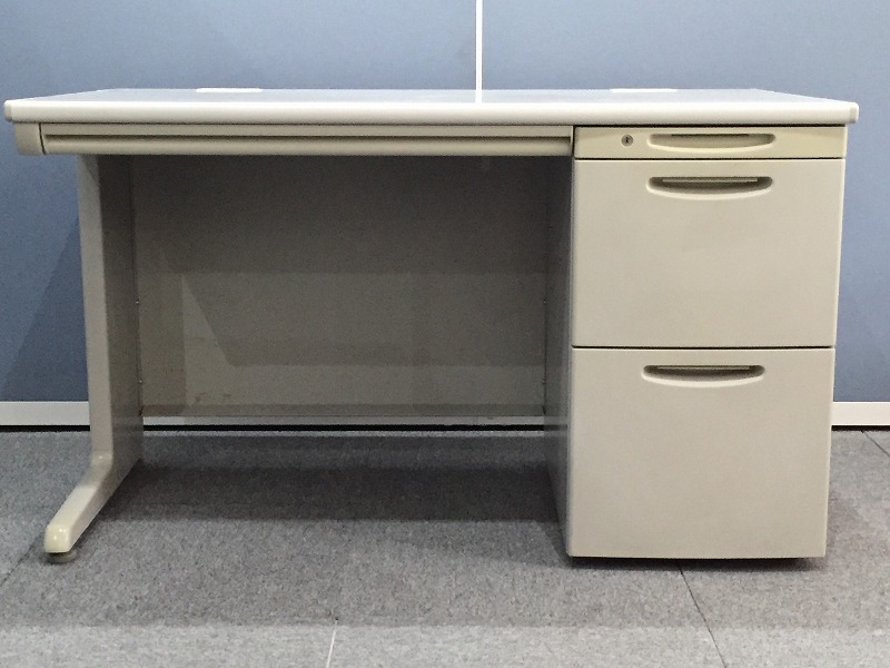 【オカムラの超定番シリーズ!袖一体型で書類をたっぷり収納可能!】■オカムラ (okamura)製 SD-Vシリーズ 片袖机 W1200mm×D700mm ■シリンダー錠 ■ライトグレー 【弊社使用欄:A01034077】