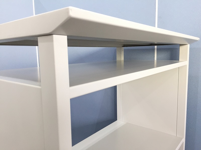 - 一部不具合あり天板歪み、引出開閉不可、アジャスター無し、施錠不可のようにそのカウンターの本来の効用を果たすための機能以外の一部が使用不可な状態。(例、引出が 開閉しづらい等がある。)