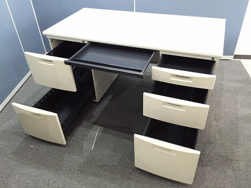 【限定1台!】現代オフィスの最先端!ホワイトの両袖机!上長席への導入がおすすめです!【袖一体型タイプ】- 新大阪店