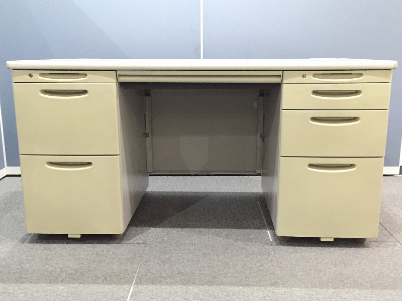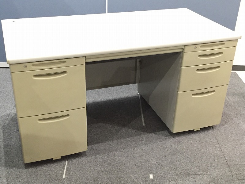 上長席・役員向けサイズ オカムラ SDデスクシステム 両袖机 定番のW1400サイズ 汚れの目立ちにくいニューグレー 鍵付き シリンダー錠